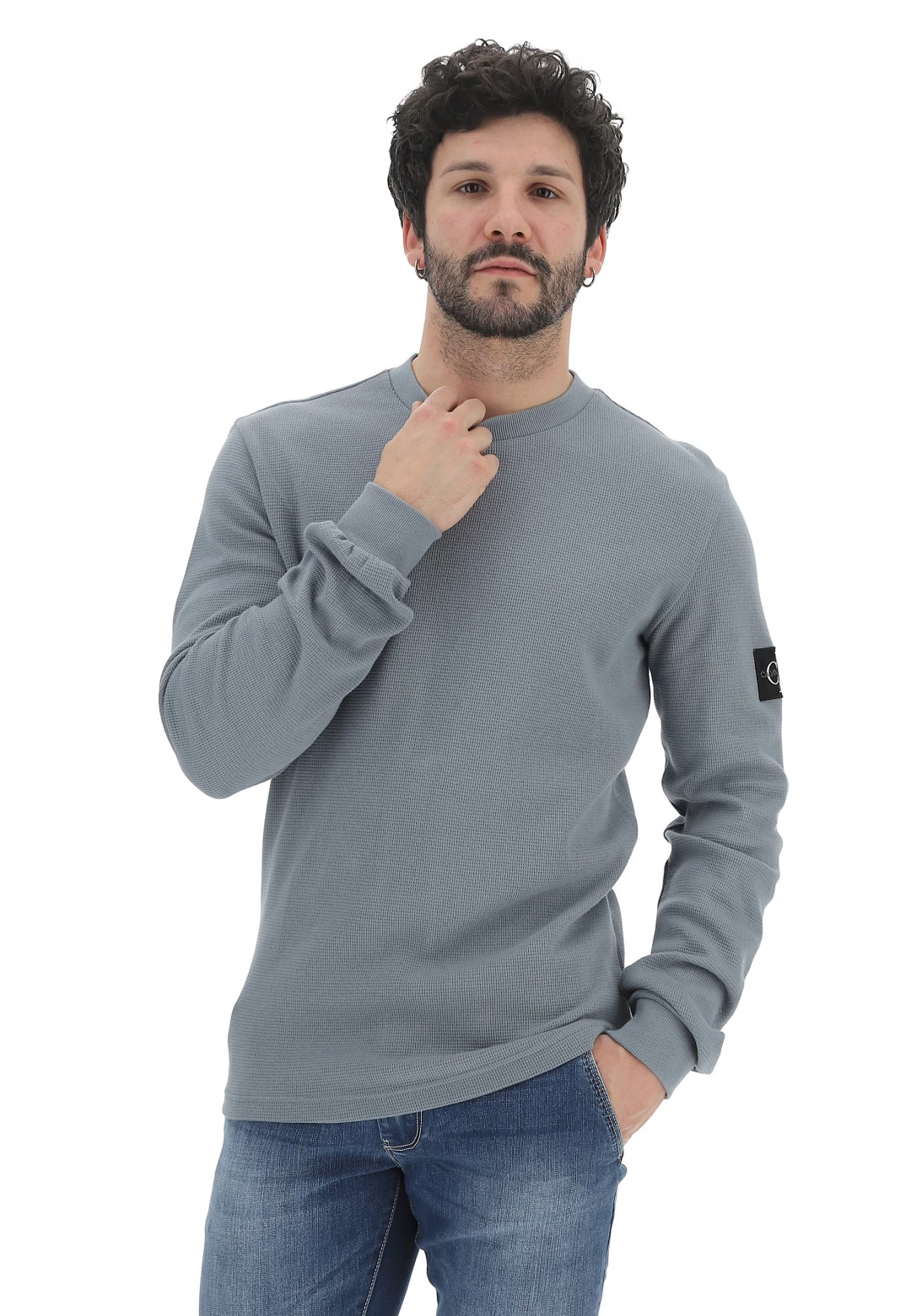 Calvin Klein Jeans Maglioncino Calvin Klein Jenas Uomo In Cotone Piquet Con Patch Applicata